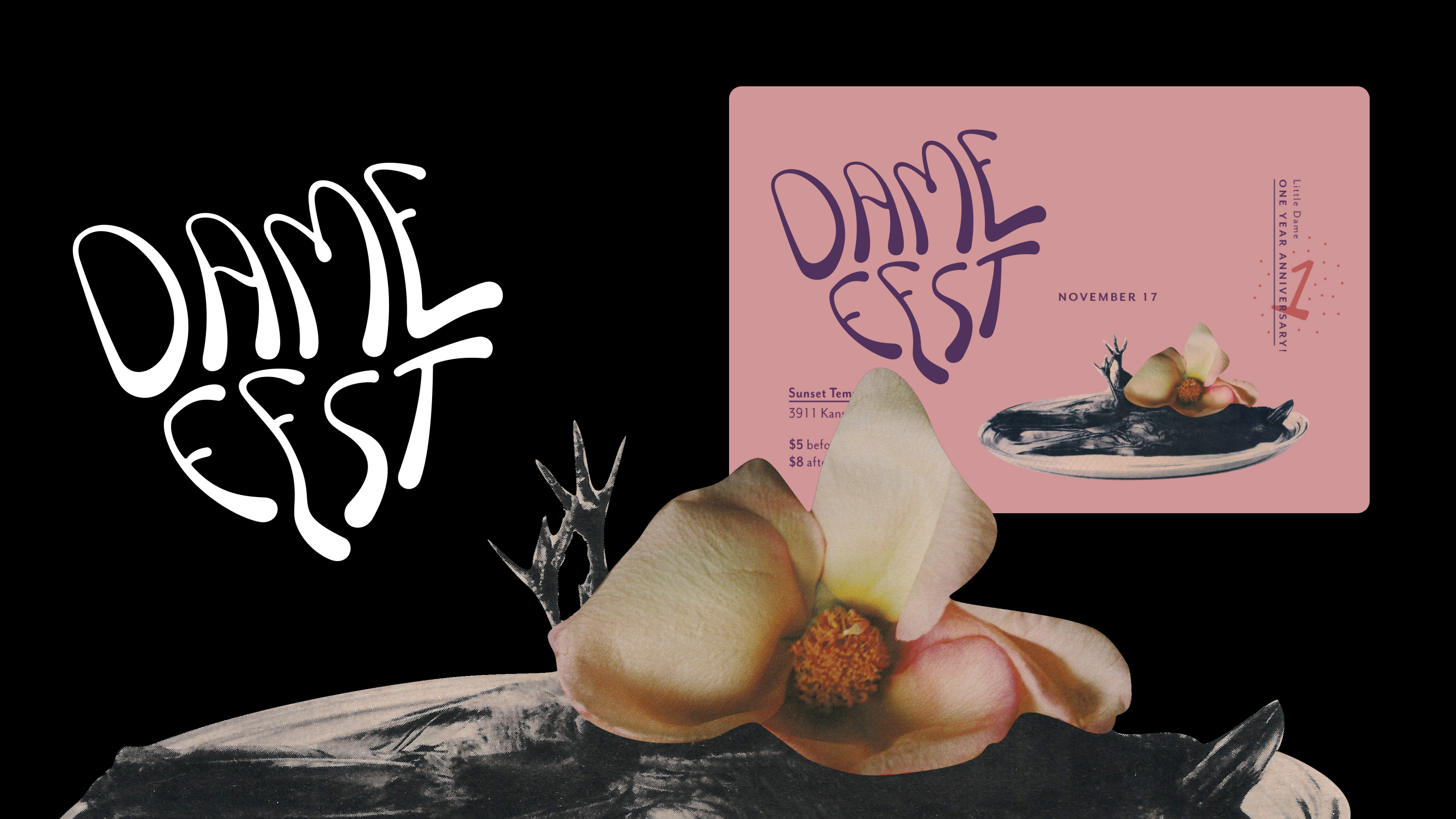 Custom lettering for a local artist-run shop, Little Dame, for their 1 year anniversary event. The event brought together local artists and vendors for a night of music and supporting artists and community. The lettering is fluid and forms the shape of a heart.