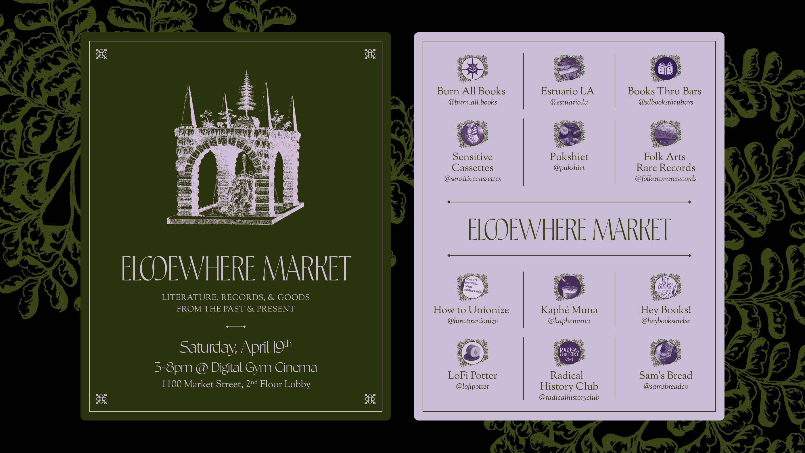 For the design of the event, I found inspiration from Sarah Davachi’s beautiful compositions, and looked to old sources of inspiration from 19th century prints and books. I carried the design inspiration into Elsewehere Market, since the events would have much of crossover due to being in the same space.